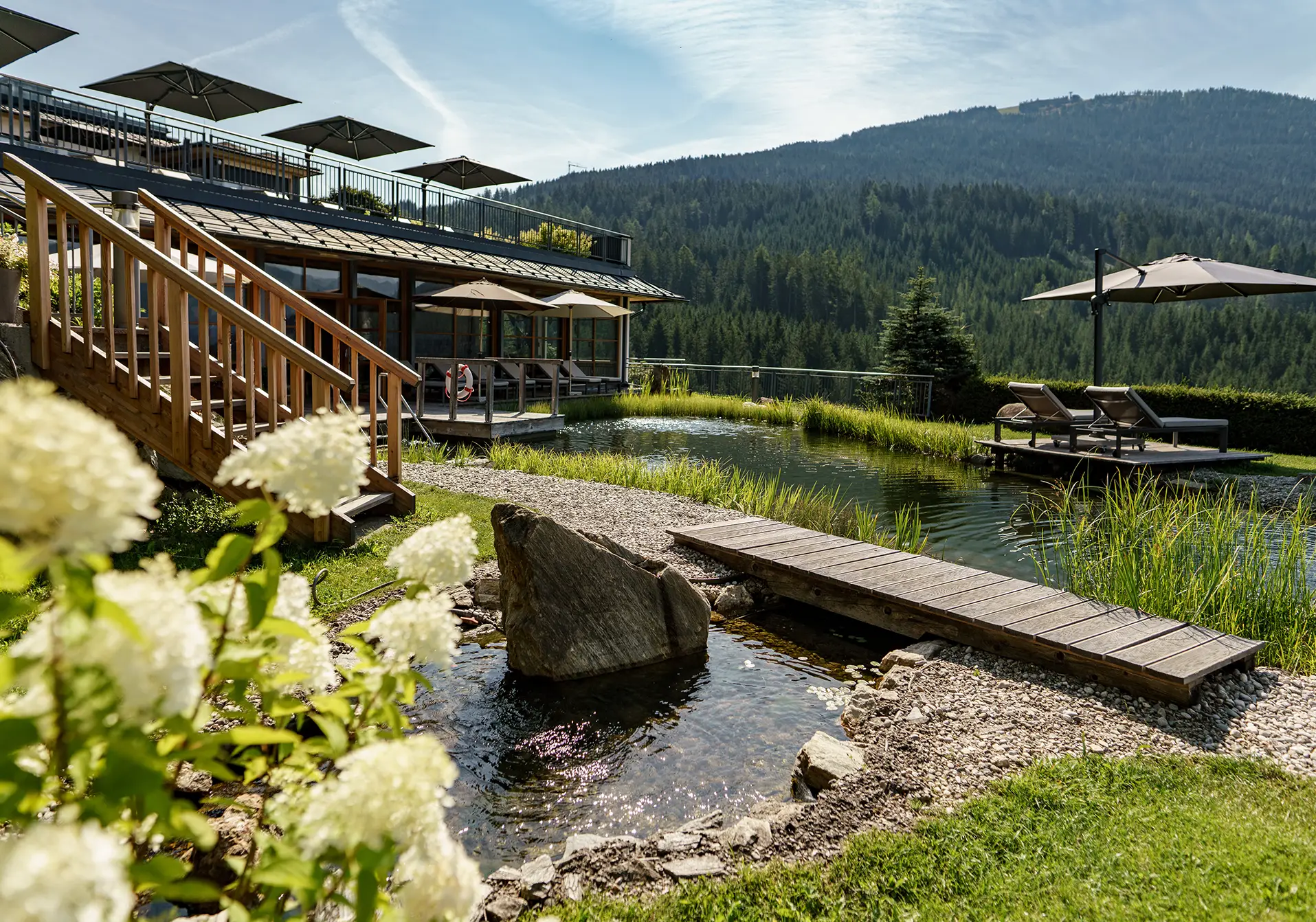 Welcome to 1,200 m above sea level – to the Naturhotel Edelweiss, above Wagrain. In the middle of the Salzburg mountains, in absolute peace and surrounded by pure nature. Lovingly designed rooms & suites with panoramic views await you in our sustainably managed hotel – ideal for couples, families and connoisseurs. Enjoy our regional organic breakfast, relax in the panoramic wellness area with a view of the Tauern mountains or discover nature right outside the door – on foot, by bike or on skis. Included in summer: the Salzburger Sportwelt Card with free gondola rides, swimming pools and family offers. In winter: Access to the Wagrain-Kleinarl ski area just 200m away. Naturally. Cordial. Edelweiss.