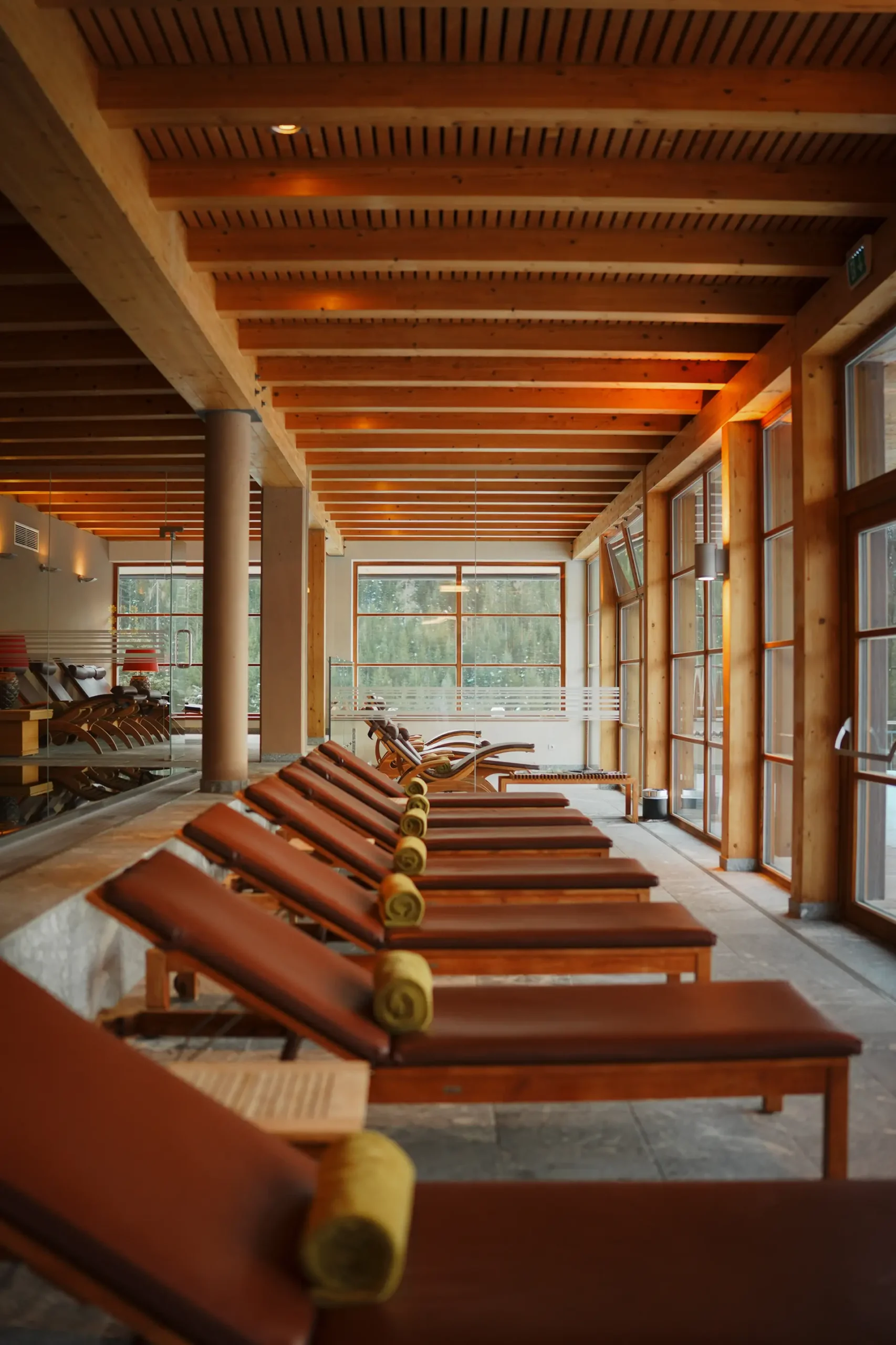 Wellness with far-reaching views at 1,200 m Green Spa with mountain views: Panoramic sauna, bio sauna & infrared, indoor pool and natural biotope – plus loungers, sun terrace and massages in the hotel.